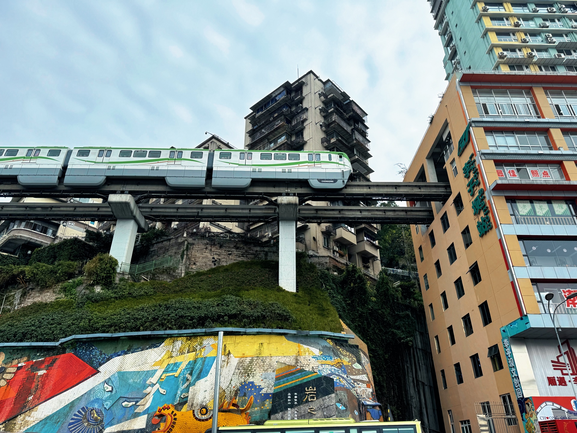 重庆在人山人海里拍到了轻轨穿楼。高低错落,非常魔幻的一个城市。